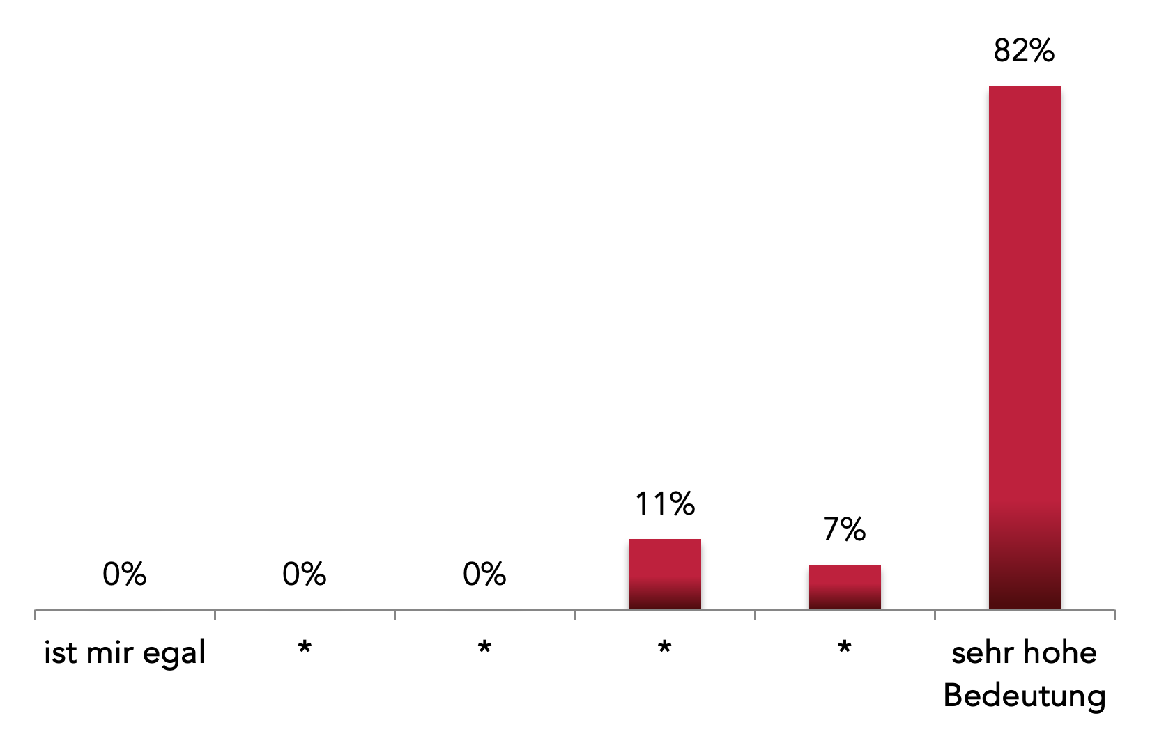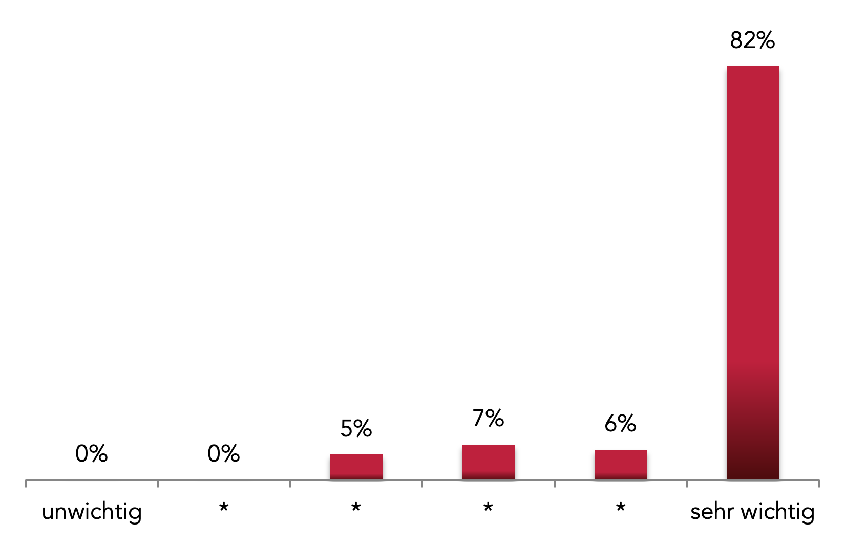 Sieben von insgesamt neun Fragen konnten mit einer 6-stufigen Bewertungsskala beantwortet werden. Hieraus haben wir ein Ranking abgeleitet, das sich an den jeweiligen Höchst-Bewertungen orientiert. Also: