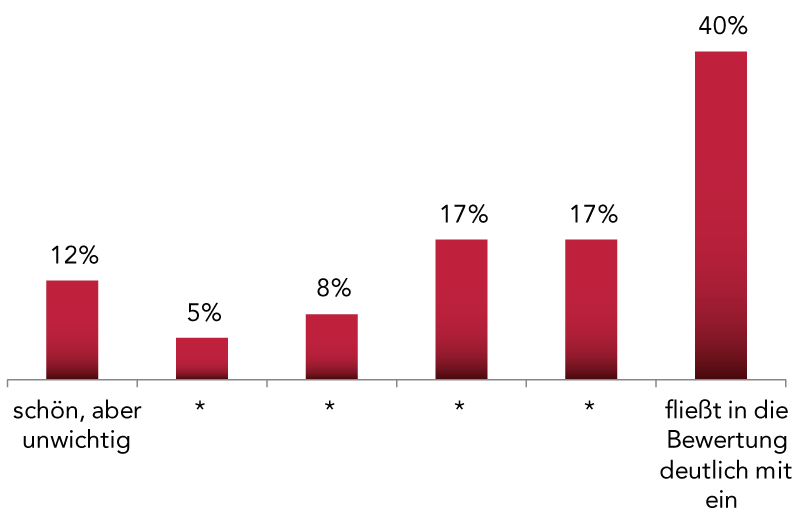 Sieben von insgesamt neun Fragen konnten mit einer 6-stufigen Bewertungsskala beantwortet werden. Hieraus haben wir ein Ranking abgeleitet, das sich an den jeweiligen Höchst-Bewertungen orientiert. Also: