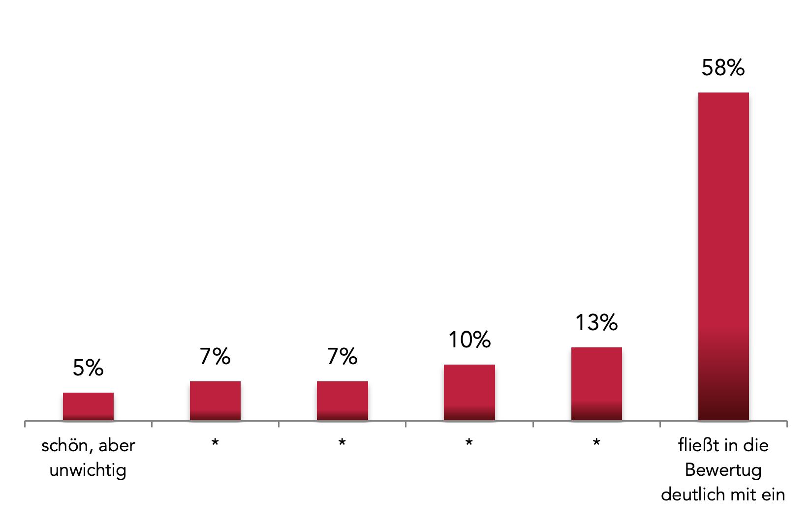 Sieben von insgesamt neun Fragen konnten mit einer 6-stufigen Bewertungsskala beantwortet werden. Hieraus haben wir ein Ranking abgeleitet, das sich an den jeweiligen Höchst-Bewertungen orientiert. Also: